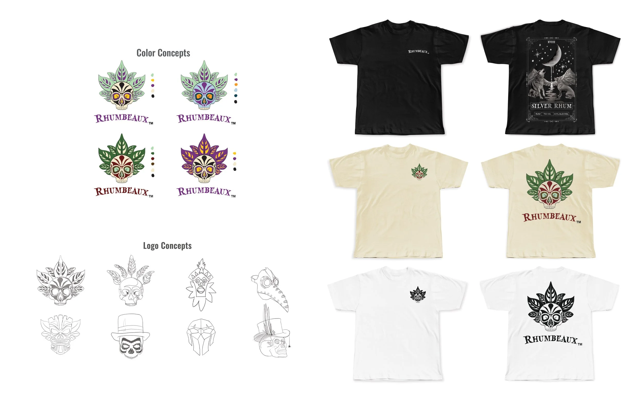 W.D. DistillingRhumbeaux Silver RumArt direction and design for brand logo, label design, bottle design, 3D closure, and apparel back to Brand Design